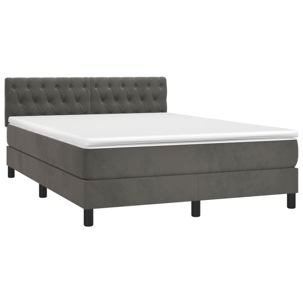 Box Spring Bed with Mattress Dark Grey 137x187 cm Double Size Velvet