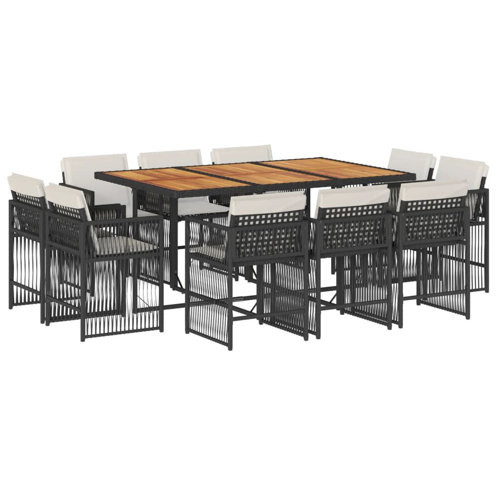 13 Piece Garden Dining Set with Cushions Black Poly Rattan