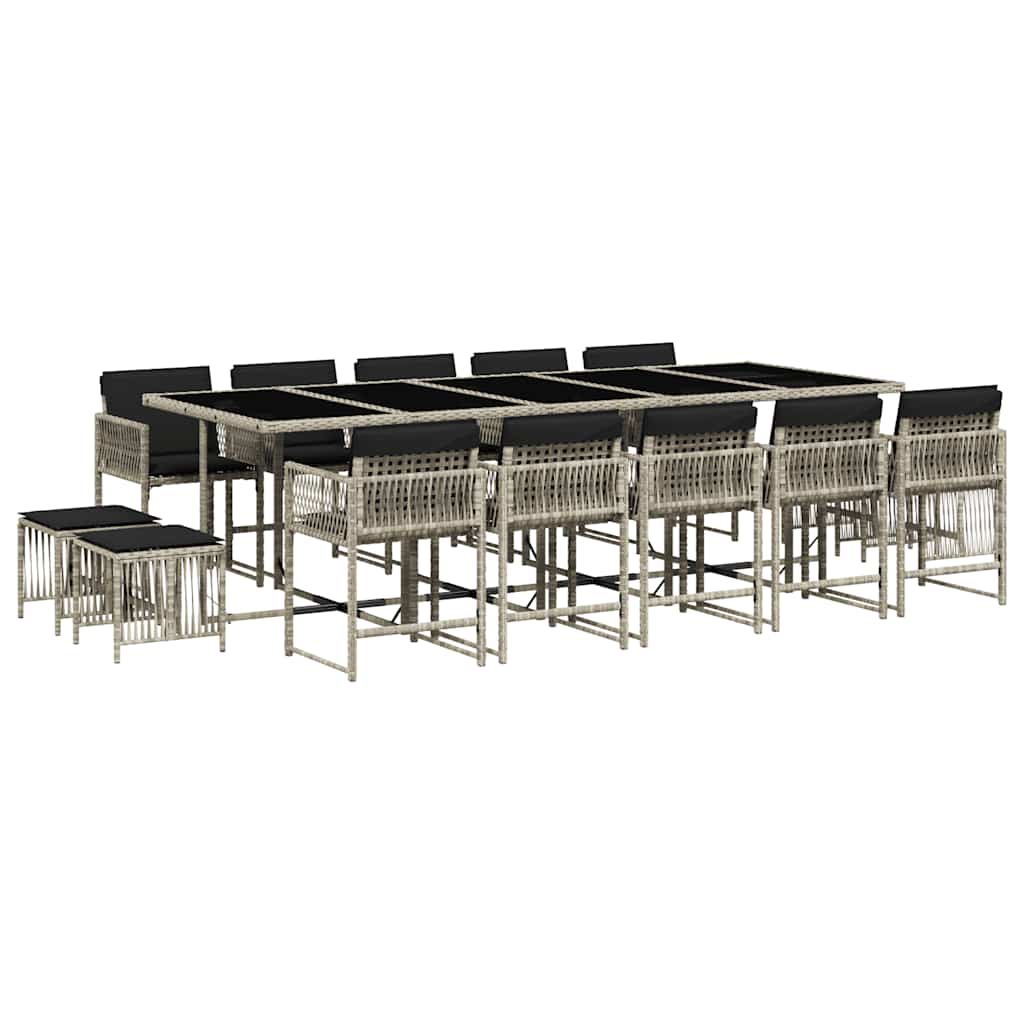 15 Piece Garden Dining Set with Cushions Light Grey Poly Rattan